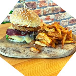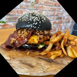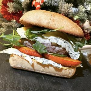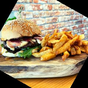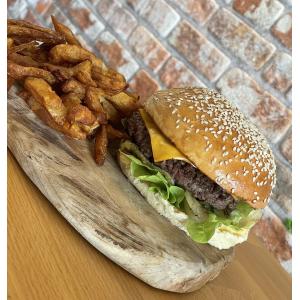 Boeuf, Cheddar, Salade, Oignons confits, Sauce burger //